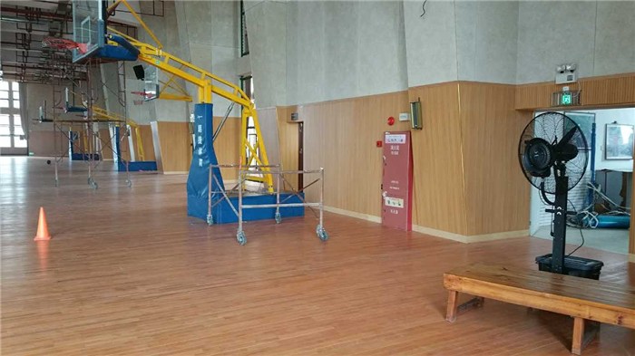 2、将篮球地板上面的运动器械等使用推车移走东莞球场木地板厂家。