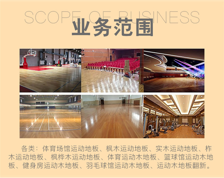 体育运动木地板是一种具高吸震性和连续性的固定悬浮式的体育运动木地板系统,完全符合要求的体育运动木地板性能。良好的环境适应性,外观亮丽、耐用、维护简单方便的特点。