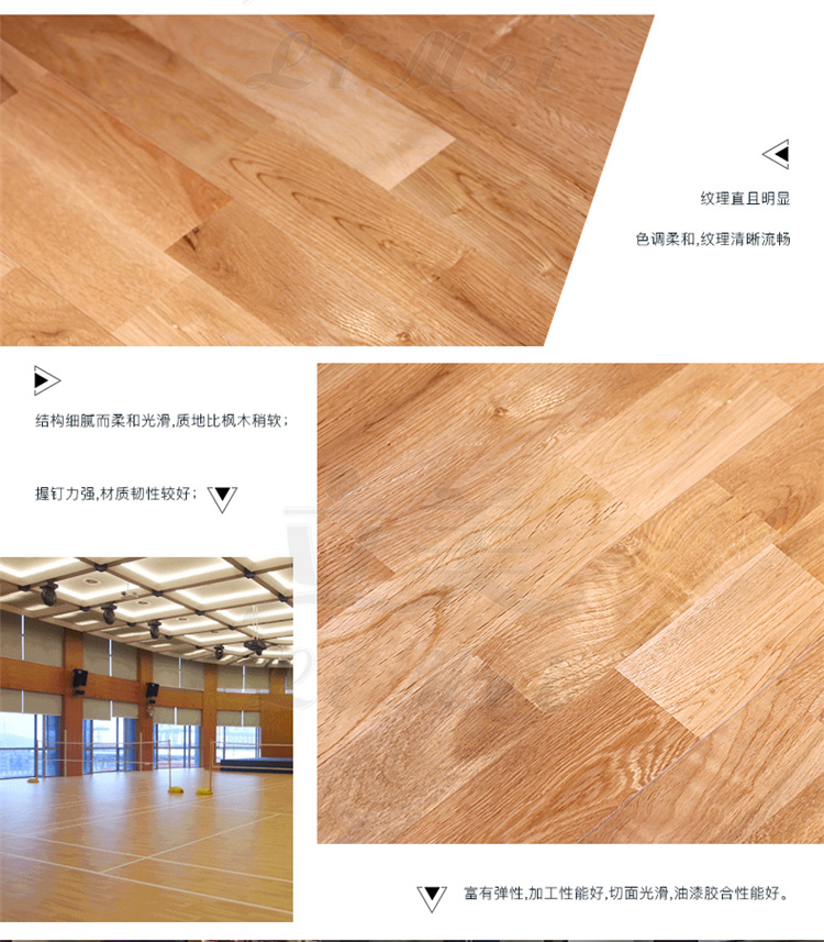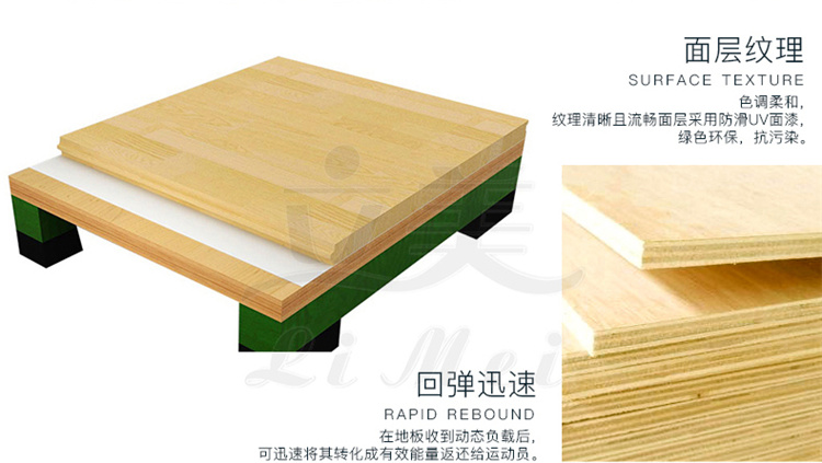 羽毛球场木地板结构。羽毛球场木地板是一个整套的体系,并不是单一,所以羽毛球场木地板是由多层实木运动地板结构组成,羽毛球场木地板结构咱们要根据本身的经济情况来选购运动木地板。比如在咱们预算有限时,咱们可以选择产质量量、都有确保的厂家。还有要根据是建设什么类型的场馆,比如咱们羽毛球馆运动木地板,咱们就没有必要去选用主辅龙骨了,由于这种结构是为篮球场馆打造的运动木地板对于室内体育馆来说是十分的重要的,为坚固的地板供给了共同的缓震耐压功用3.减少在地板上弹跳的噪音影响。面板:面板可选用实木复合或实木板,树种选用硬木,比较普遍运用的有硬枫木,水曲柳,柞木,榉木等等。依据是否将龙骨与地上做固定以及选用何种固定方法。契合运动木地板要求的各项规范。相关于双龙骨运动木地板,其特点是外观亮丽、经用、保护简略方便。常见的篮球场木地板的木材品种有枫木,松木和柞木等。不同的顾客会根据自己的品尝和喜好选择喜欢的羽毛球场木地板的资料,其间枫木和柞木这两种资料凭借着超卓的功用博得了许多人的喜欢。通过长期的堆集证明,枫木和柞木是羽毛球场木地板为很好的木材品种。在国际上,体育馆实木地板已从当初简略的单层、双层运动木地板,发展到今天广泛盛行的多层运动实木地板。体育馆用实木地板需求具有运动、保护及技能三个基本功用。运动员在运动时构成的冲量作用到木地板平面会发生颤动,体育实木地板的整体结构有必要要具有颤动吸收功用,也便是说运动员跳起在回落到木地板时。