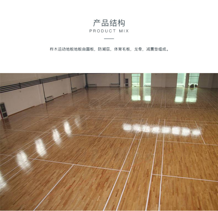 区别于普通的木地板布局,体育木地板由于要适应强度很大的体育赛事因而对于其适用性请求就更高。针对行动员的各种需求,体育木地板的这些请求想要达标,就势必对体育地板的加工工艺加倍垂青,它平时由防潮层、弹性垫层、承载层和稳定层这四部分构成。